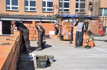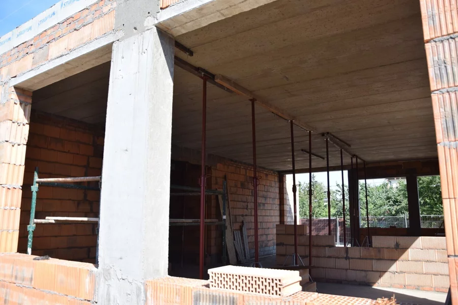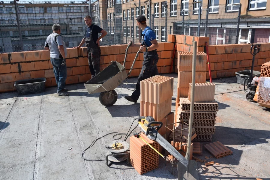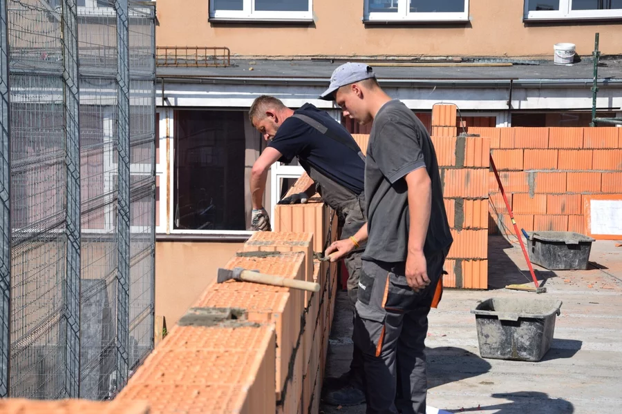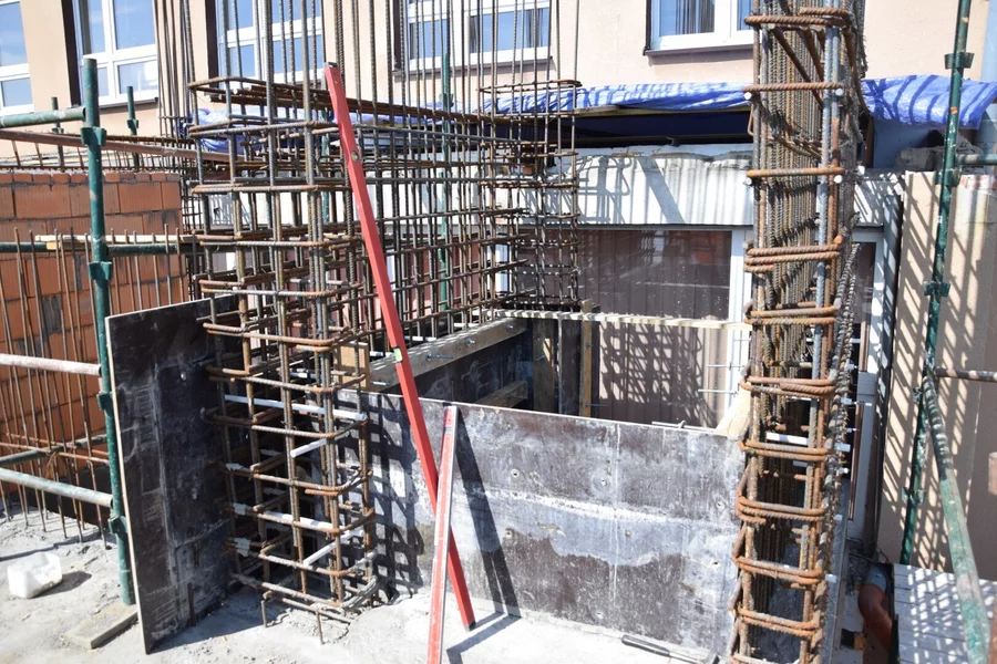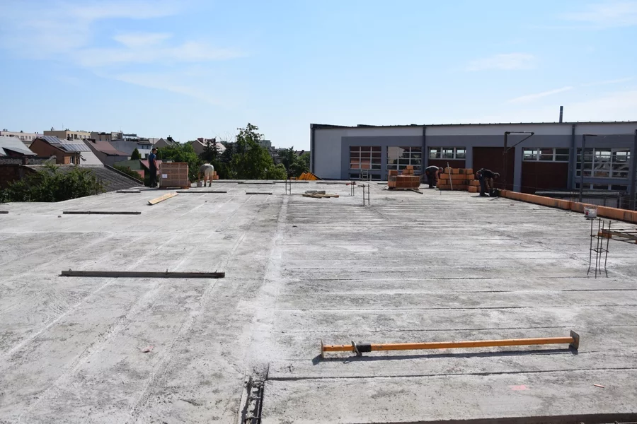 Trwa budowa Centrum Kształcenia Praktycznego przy Zespole Szkół Ponadpodstawowych im. F. Ratajczaka w Kościanie. Postawiono już ściany parteru i położono stropy. Rozpoczyna się murowanie ścian pierwszego piętra. Trwają prace przy budowie windy.