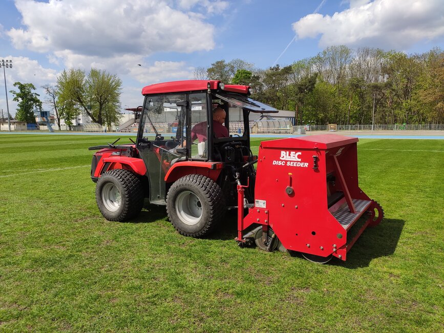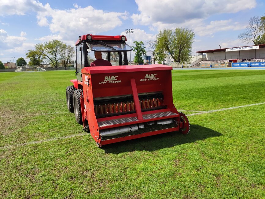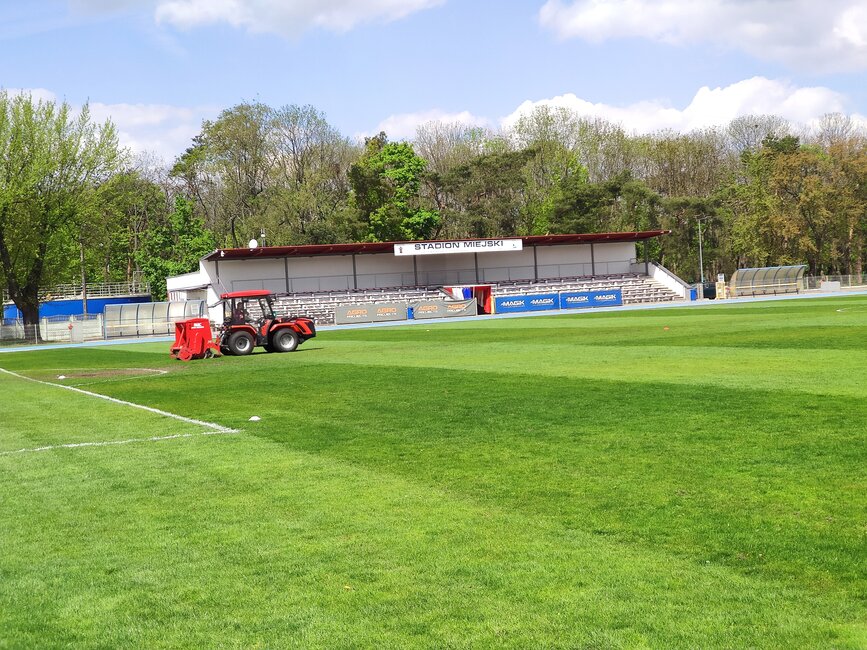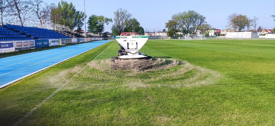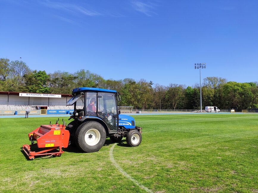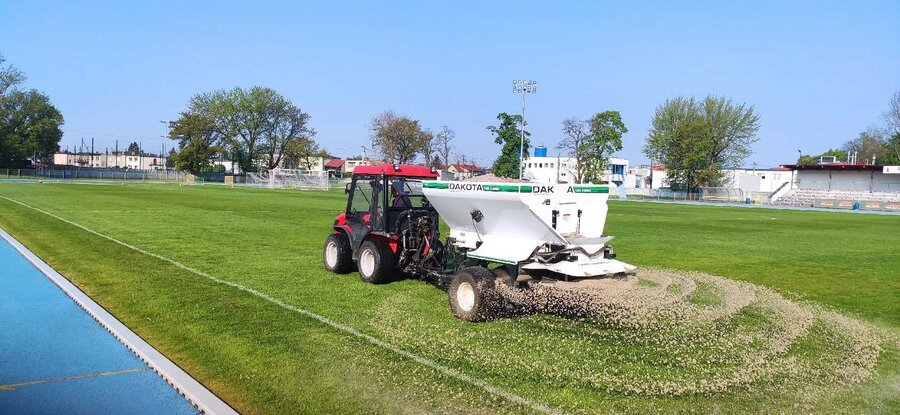 Na Stadionie Miejskim w Kościanie prowadzono prace pielęgnacyjne murawy.