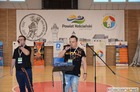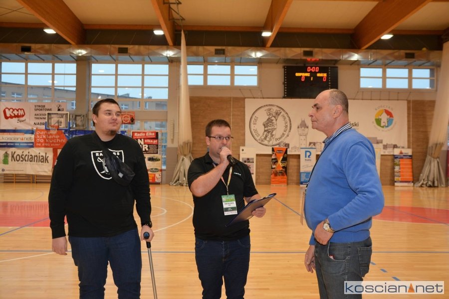 Beneficjent - Daniel Glapiak, organizator turnieju Jan Budzyński i burmistrz Kościana Piotr Ruszkiewicz