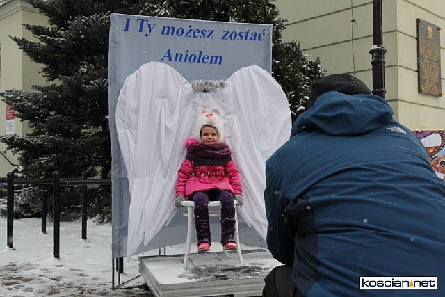 W Kościanie kwestowała setka wolontariuszy. Przed południem na Rynku można było kupić orkiestrowe kubki, miniaturki skarbonek i kościańskie pocztówki. 5 zł kosztowało pamiątkowe anielskie zdjęcie z cyklu ,,I Ty możesz zostać Aniołem’’. W samo południe na 10-kilometrową trasę Biegu Wielkoorkiestrowego organizowanego przez Sztafetę Ateńską ruszyła grupa biegaczy i miłośników nordic walking.