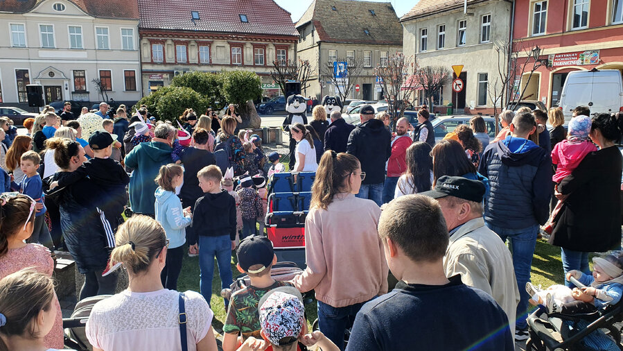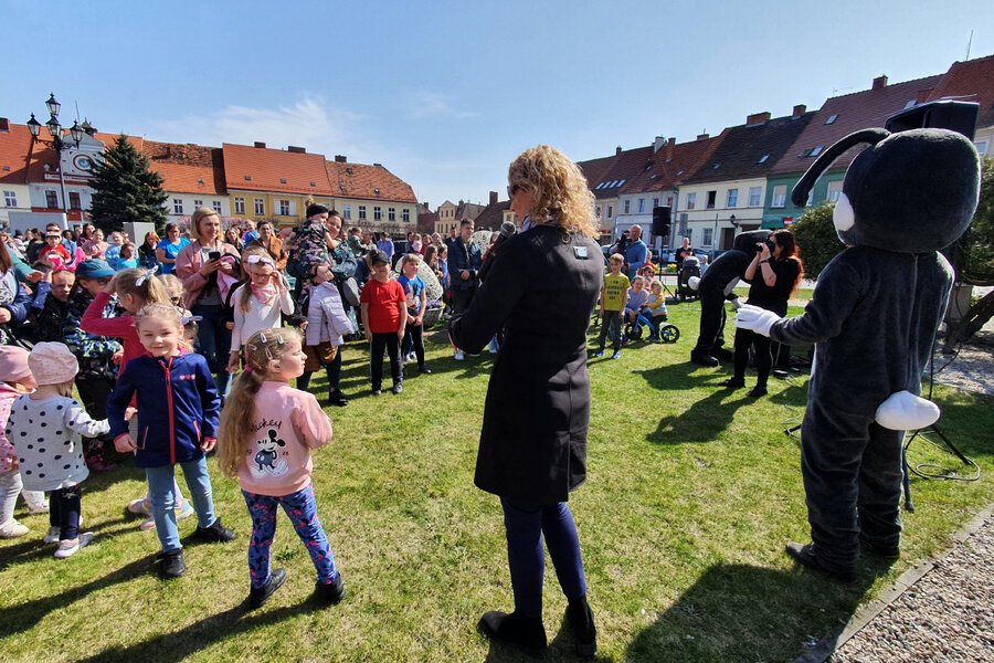 W Wielki Czwartek na śmigielskim rynku odbyło się spotkanie dzieci z gminy Śmigiel z Zajączkami Wielkanocnymi.