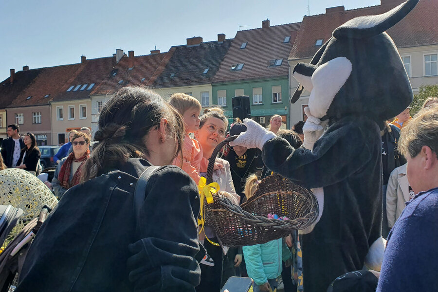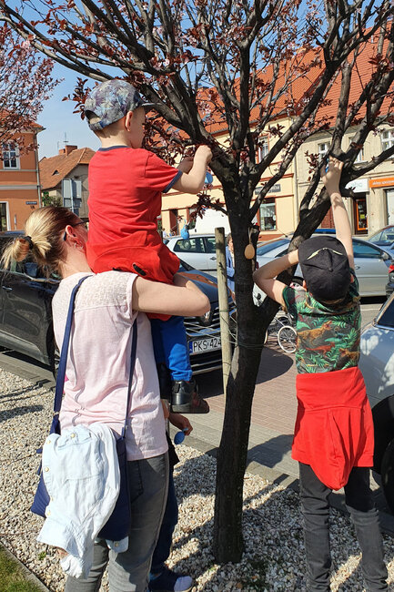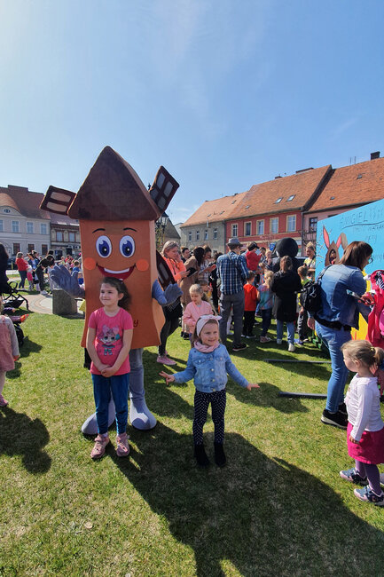 Zajączkom towarzyszyła burmistrz Małgorzata Adamczak oraz śmigielski wiatrak Serwacy. Na każdego, kto o godzinie 11:00 przybył do centrum czekał słodki upominek. Ponadto dzieci mogły wziąć w strojeniu rynku w wielkanocne pisanki.