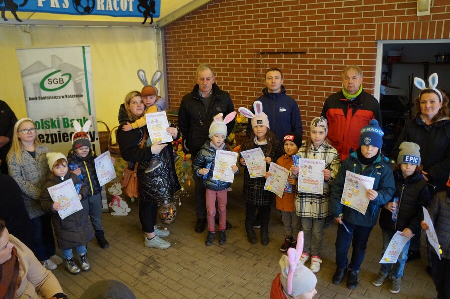 Podczas półtoragodzinnej zabawy dzieci w wieku do 10 lat zbierały do swoich koszyczków pisanki, a tych organizatorzy przygotowali ponad tysiąc. W drugiej części zabawy dzieci odpowiadały na zagadki wielkanocne. Wśród 11 nagrodzonych finalistów najwięcej punktów - 391 - zdobył Antek Stanisławiak. Odnotujmy, że najmłodszy uczestnik zabawy miał rok. Organizatorem imprezy było Sołectwo Racot.