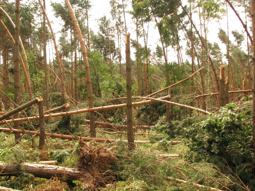 W związku ze szkodami wyrządzonymi ubiegłotygodniową nawałnicą Nadleśniczy Nadleśnictwa Kościan wprowadził zakaz wstępu do lasu.