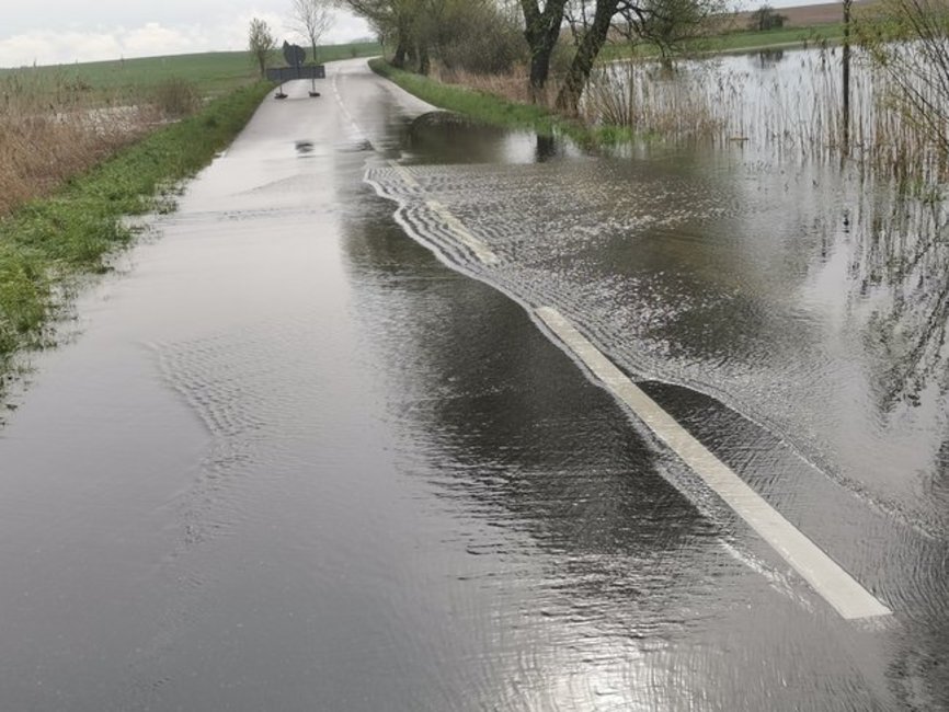 Z powodu zalania jezdni zamknięto drogę z Nielęgowa do Gryżyny.