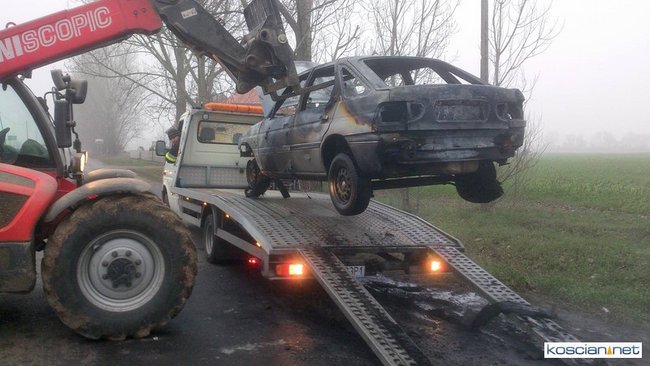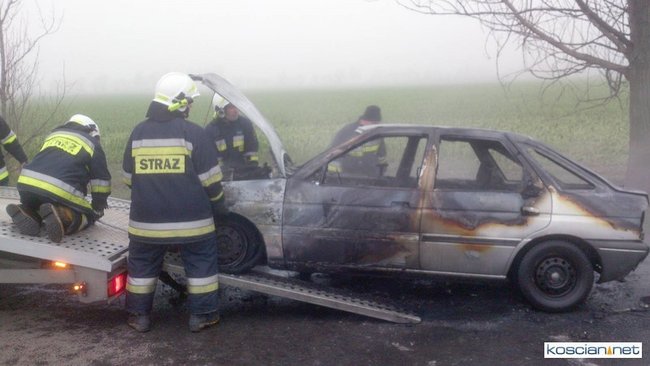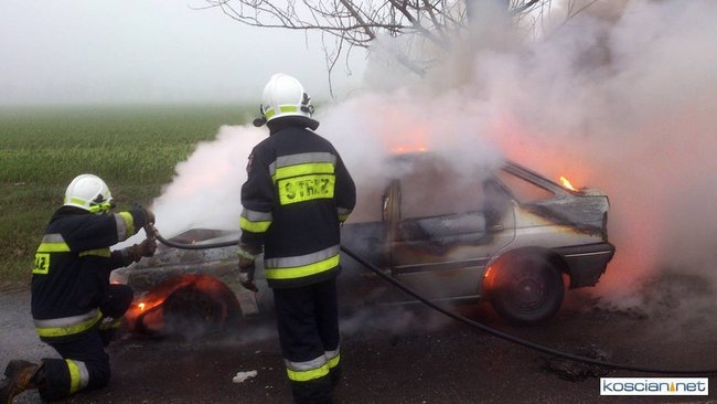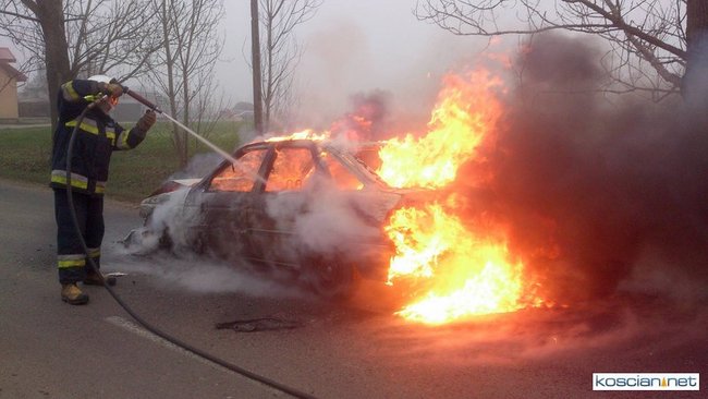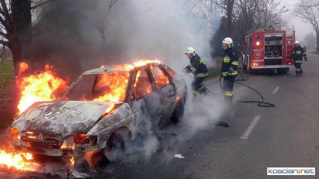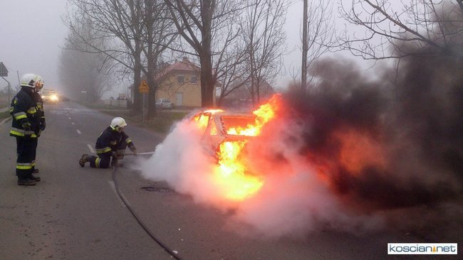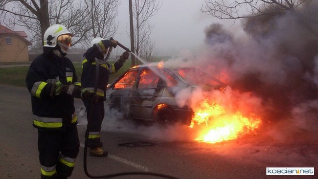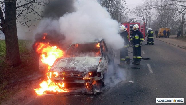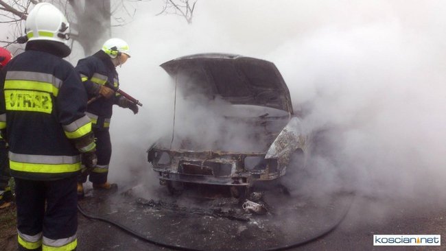 Do zapłonu doszło w czasie jazdy w okolicach Piechanina. Kierowcy i pasażerowi nic się nie stało, ale auto doszczętnie spłonęło mimo szybkiej interwencji Ochotniczej Straży Pożarnej z Czempinia.