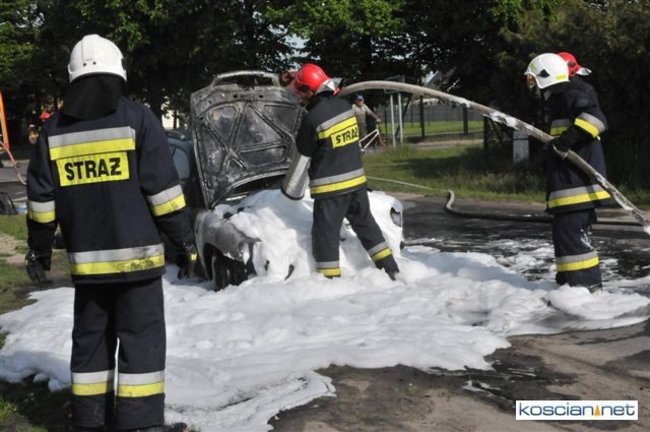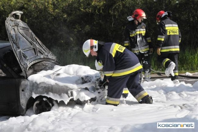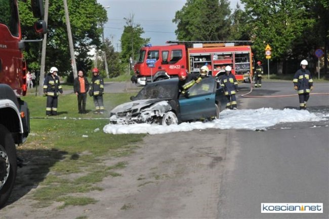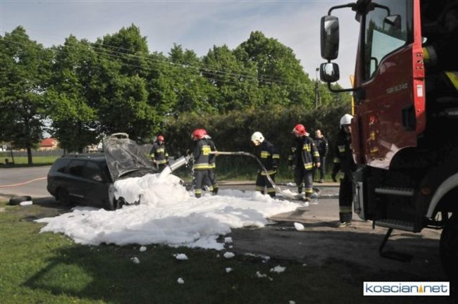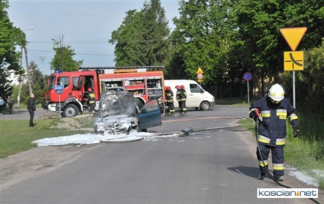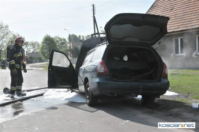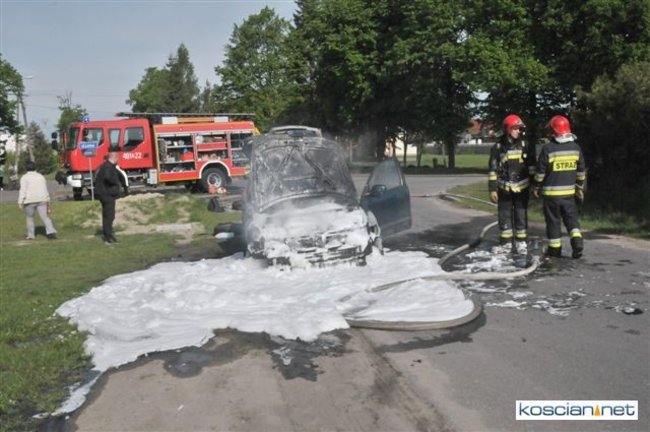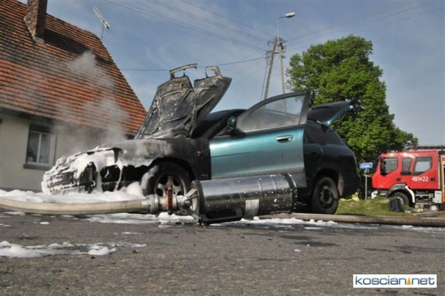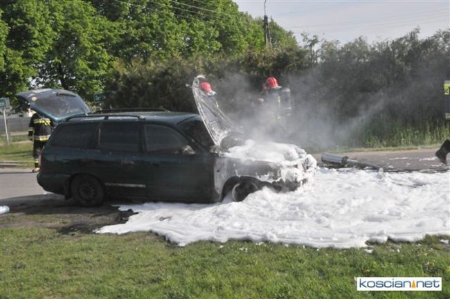Strażacy z PSP Kościan i OSP Racot gasili dziś rano samochód marki Daewoo Nubira, który zapalił się w Starym Luboszu.