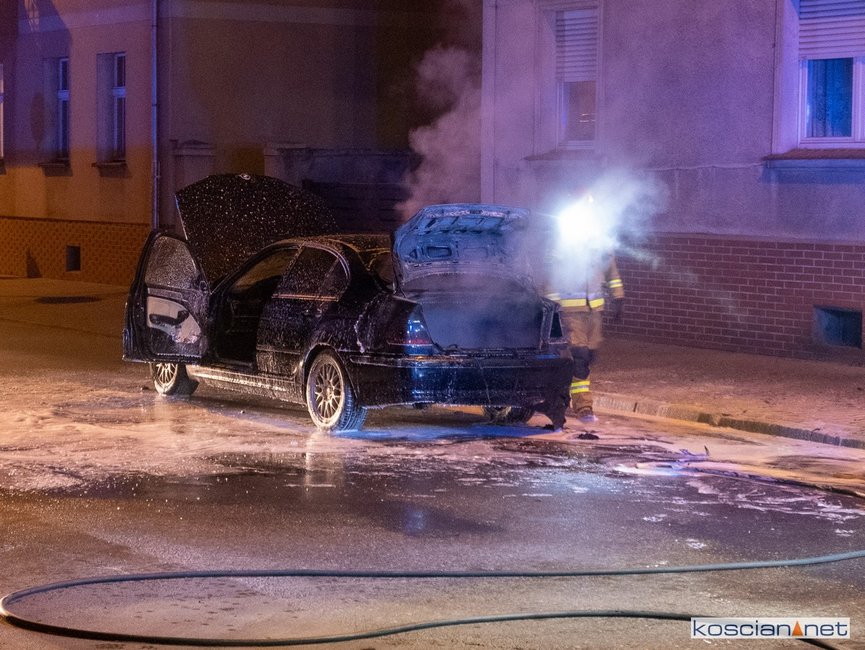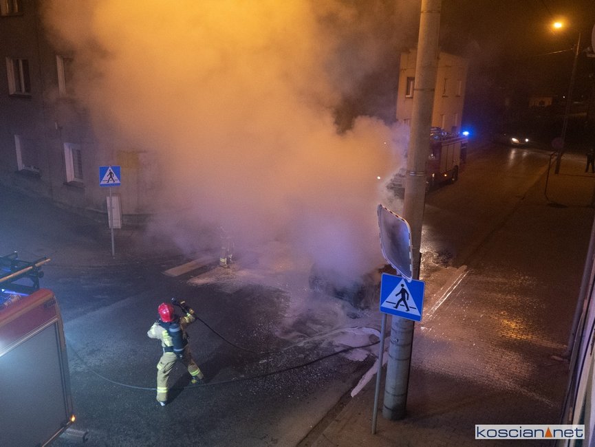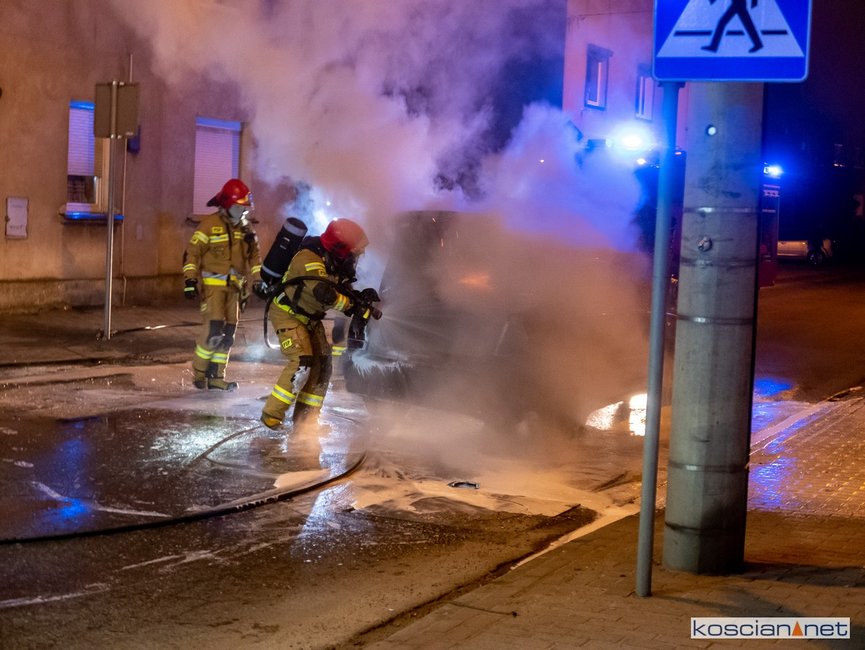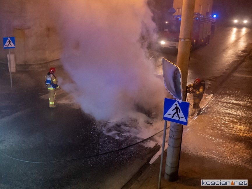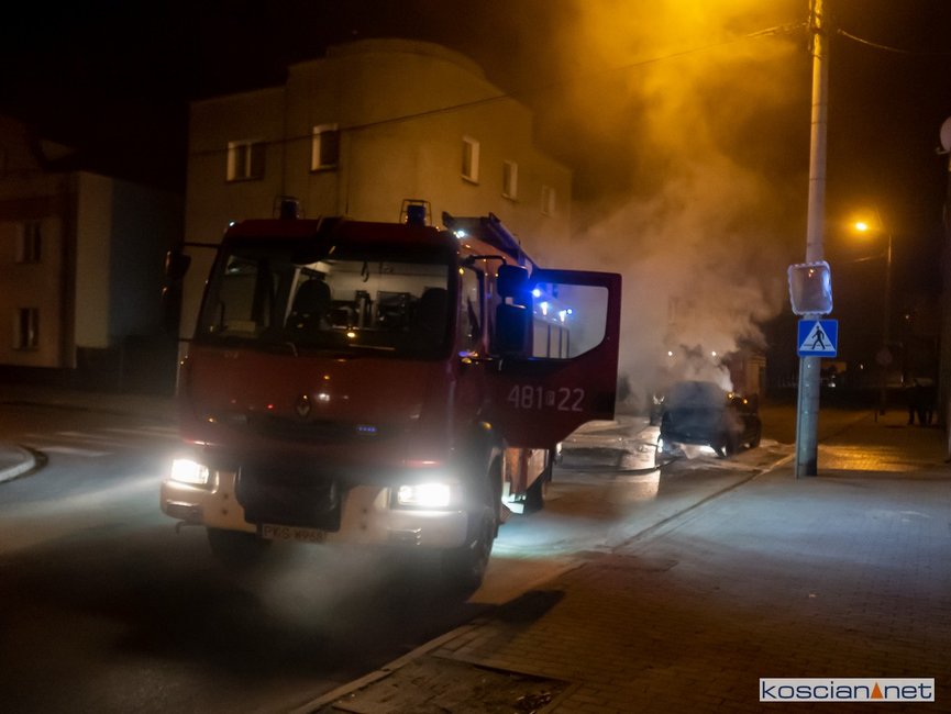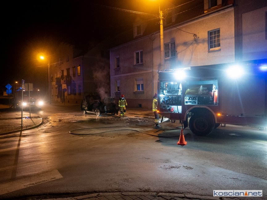 Jadący ulicą Marcinkowskiego w Kościanie samochód stanął w ogniu.