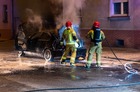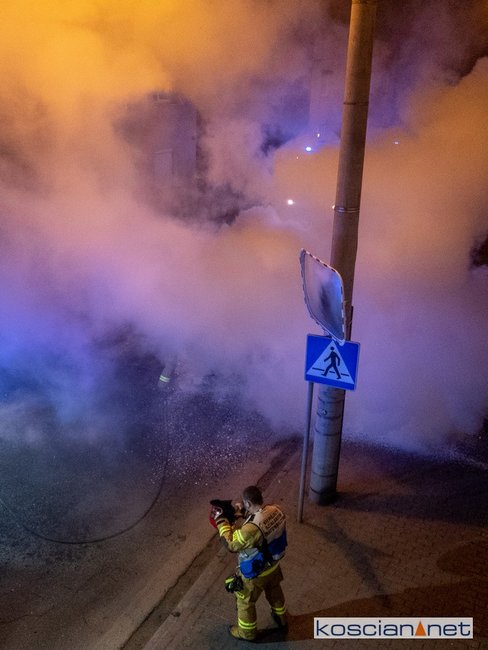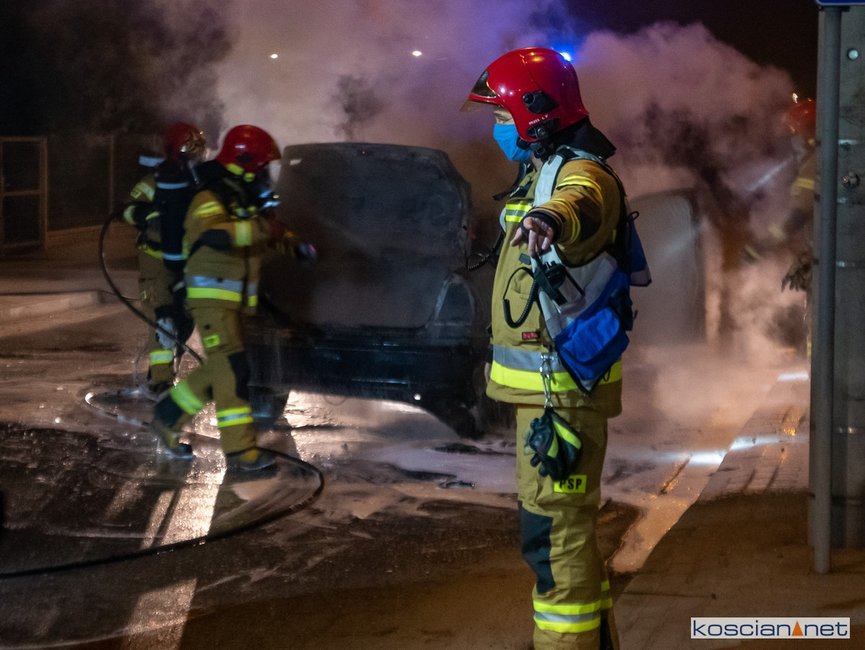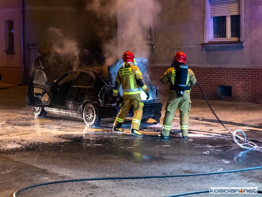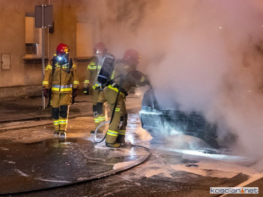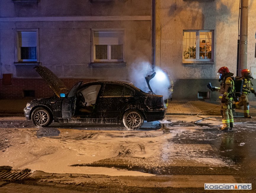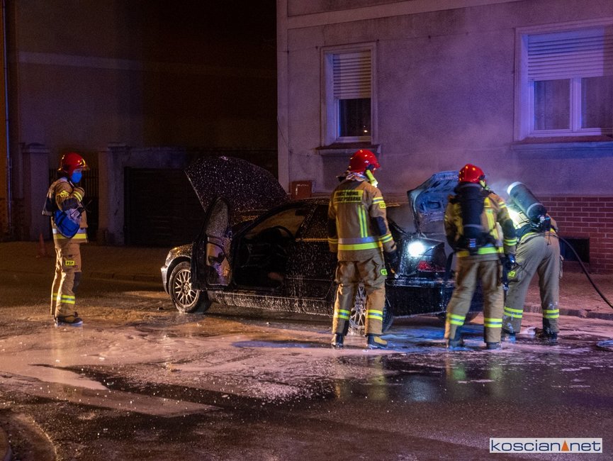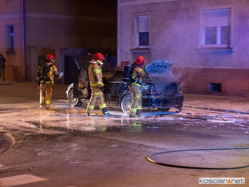 Jadący ulicą Marcinkowskiego w Kościanie samochód stanął w ogniu.