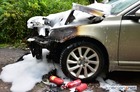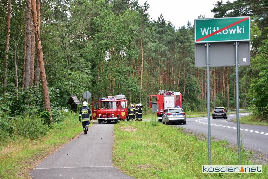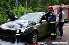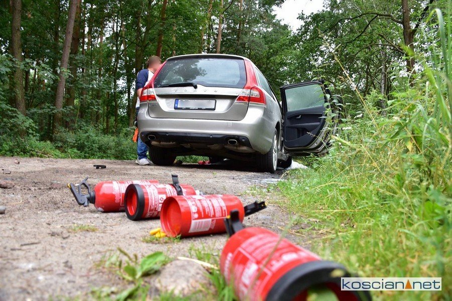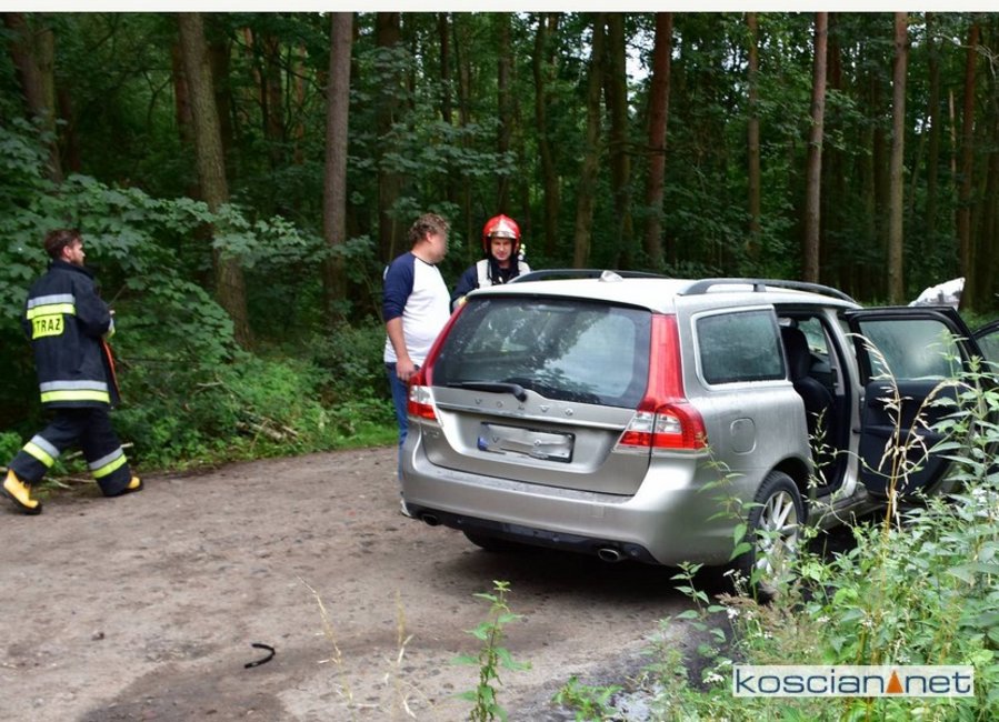 Na leśnej drodze pomiędzy Słoninem a Witkówkami zapaliło się volvo 70.