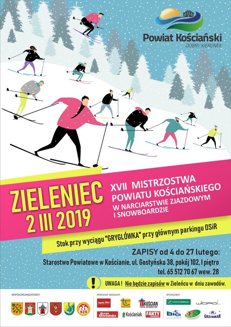 Mistrzostwa Powiatu Kościańskiego w Narciarstwie Zjazdowym i Snowboardzie, tradycyjnie odbędą się w pierwszą sobotę marca na stoku Gryglówka w Zieleńcu.
