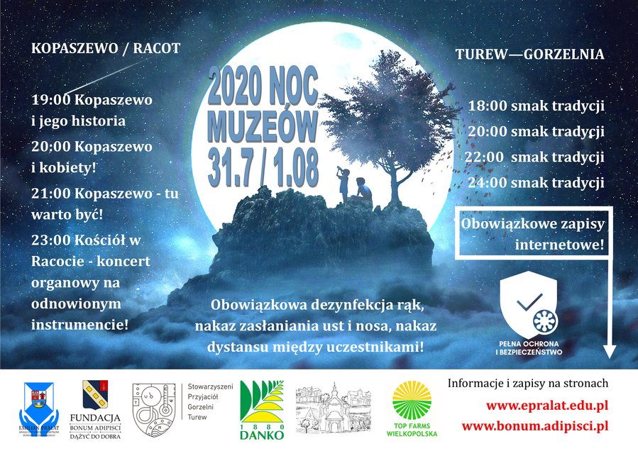Ze względów sanitarnych liczba uczestników Nocy Muzeów jest ograniczona. Każda grupa może liczyć maksymalnie 30 osób. Decyduje kolejność zgłoszeń. Są jeszcze wolne miejsca. Zapisy prowadzone są wyłącznie internetowo pod adresem epralat.edu.pl/noc-muzeow-2020.