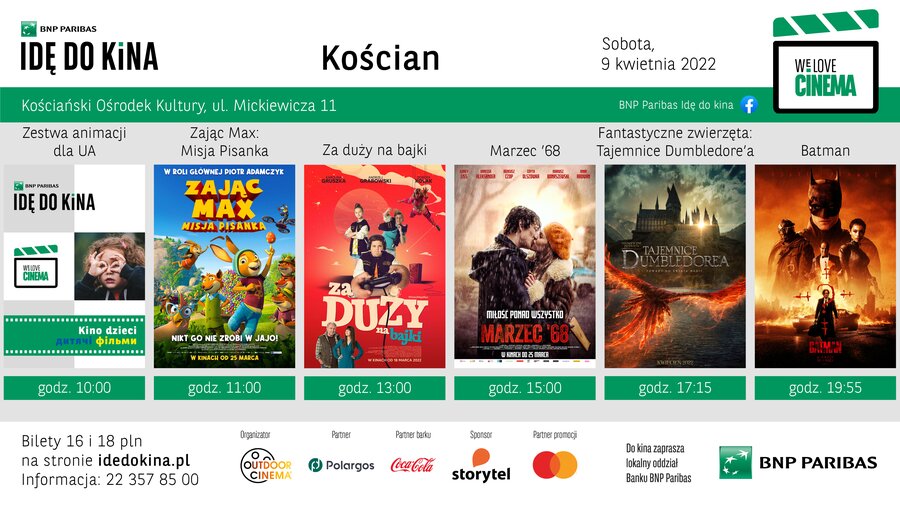 Rozdajemy bilety do kina. BNP Paribas zaprasza na filmy: Batman, Fantastyczne zwierzęta: Tajemnice Dumbledore’a, Marzec 68 , Zając Max: Misja Pisanka, Za duży na bajki.