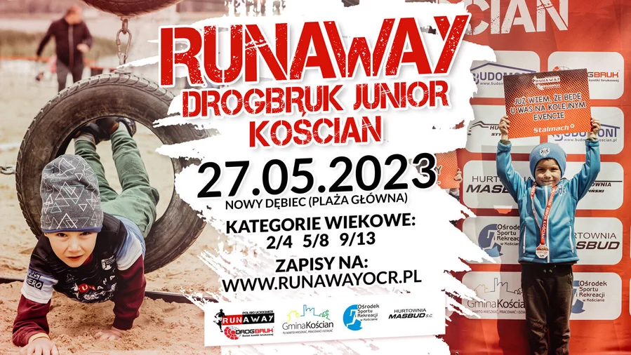 Zapisy trwają do 25 maja, a impreza odbędzie się 27 maja br. ZAPISY ONLINE prowadzone są pod adresem b4sportonline.pl/runaway_drogbruk_junior_koscian