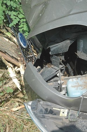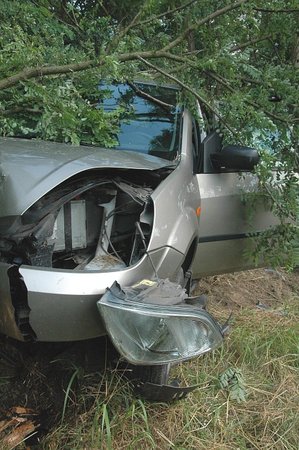 Kobiecie nic się nie stało, natomiast auto zostało poważnie uszkodzone.