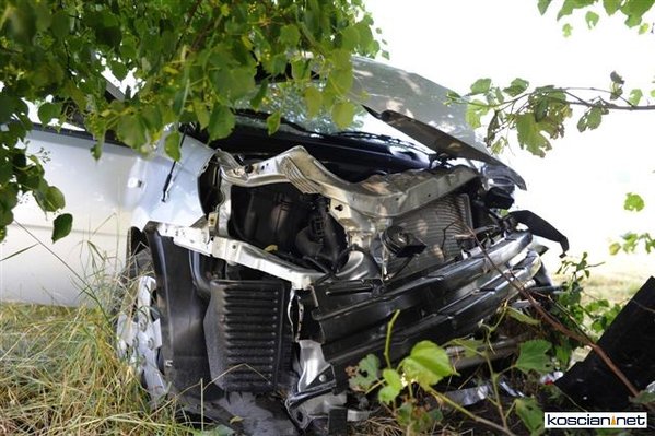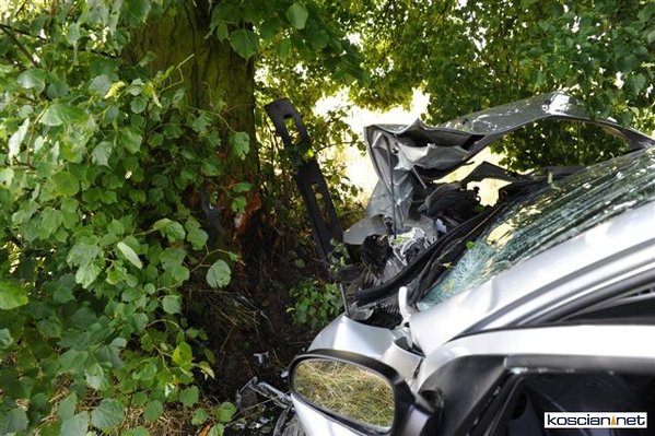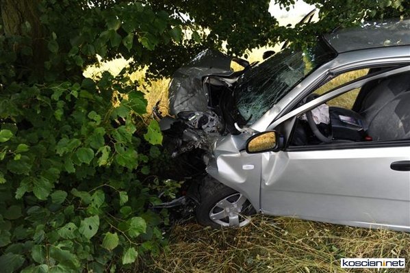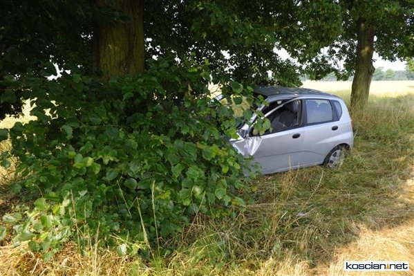 Wczoraj, ok. godz. 8:20, na drodze pomiędzy Spytkówkami a Witkówkami, 49-letni mieszkaniec gminy Czempiń kierujący chevroletem, stracił panowanie nad samochodem i uderzył w przydrożne drzewo. Kierowca doznał wstrząśnienia mózgu, urazu klatki piersiowej i urazu biodra. Kierujący był trzeźwy i zapięty w pasy.