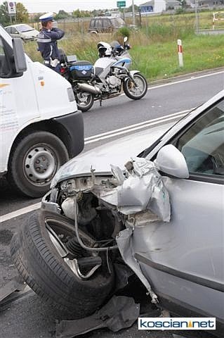 Na skrzyżowaniu ulicy Sierakowskiego w Kościanie z drogą krajową numer 5 czołowo zderzyły się renault kangoo i volkswagen passat. Według wstępnych ustaleń kierowca renaulta zasnął za kierownicą.