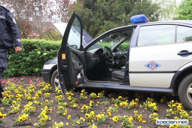 Pościg zakończył się na skrzyżowaniu ulicy Marcinkowskiego z ulicą Bączkowskiego. Jadący z dużą prędkością ford nie zmieścił się na łuku skrzyżowania, wjechał na chodnik i uderzył w drzewo. Ścigający go radiowóz wjechał na Skwer Szarych Szeregów kończąc jazdę na rabatce obsadzonej bratkami, którą chwilę wcześniej, ktoś pielił. Uciekiniera ujęto. Trwa dochodzenie w tej sprawie.