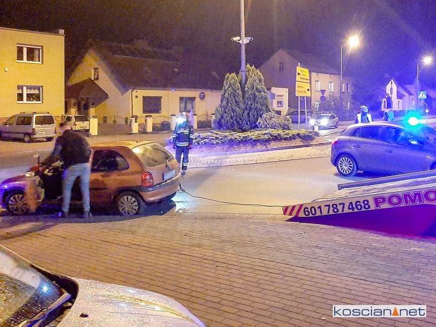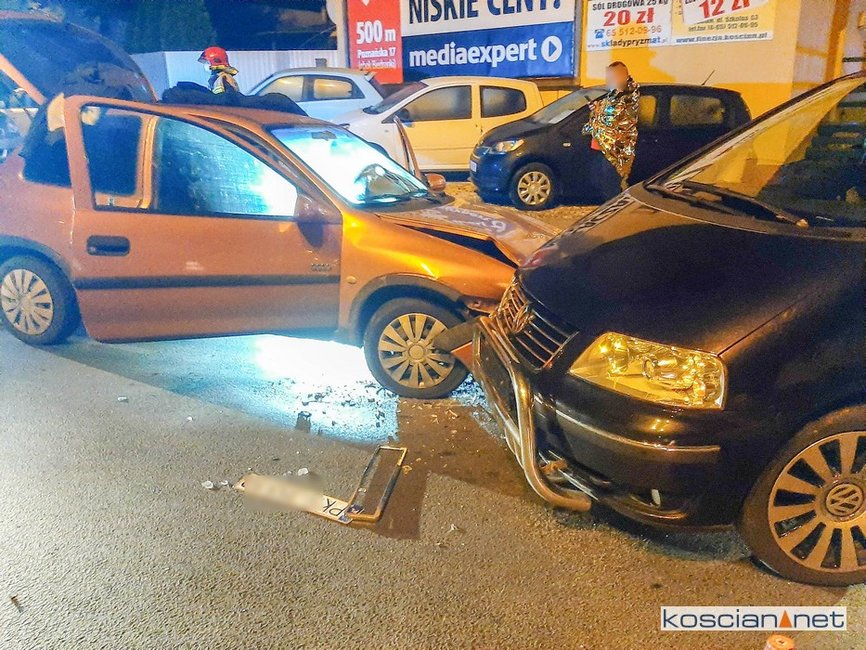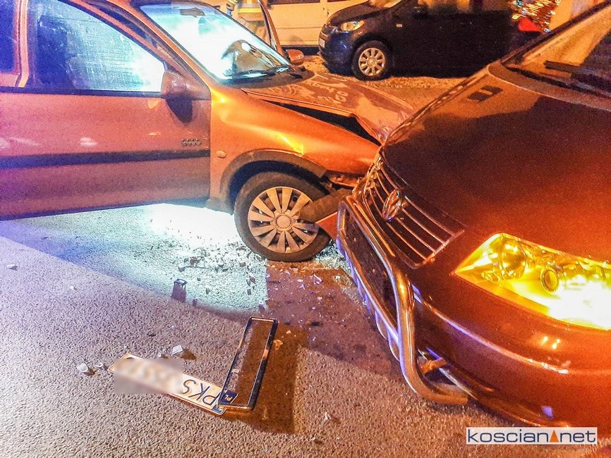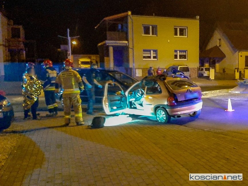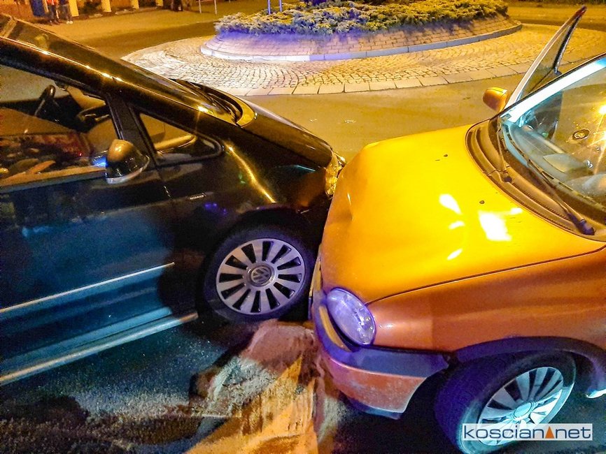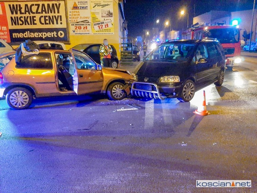 Do kolizji doszło w sobotę, 24 października, po godzinie 23., na skrzyżowaniu ulicy Poznańskiej i Północnej w Kościanie. Ścigany przez policyjny radiowóz kierowca opla corsy wjechał na rondo „pod prąd” po czym zderzył się czołowo z volkswagenem.