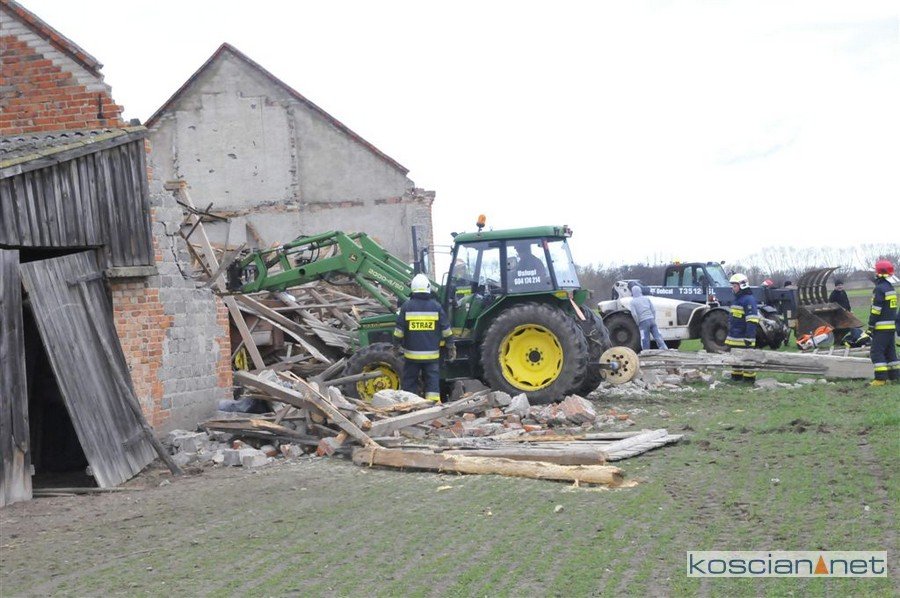 Do zdarzenia doszło w czwartek, 12 marca, około godziny 15. w Spytkówkach (gmina Kościan). Zawalił się pokryty dachówkami dach budynku gospodarczego, w którym przechowywane były maszyny rolnicze. Budynek zabezpieczyli strażacy z PSP Kościan i OSP Racot i Turew.