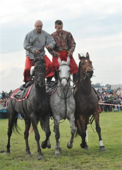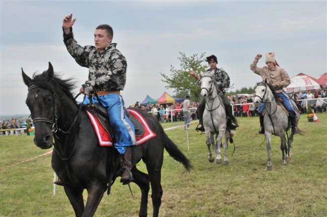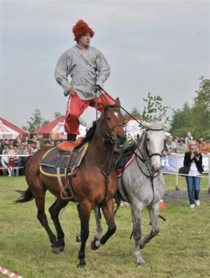 Podczas zawodów kaskaderzy z Apolinarski Group z Bukówca Górnego dali pokaz dżygitówki, czyli akrobatycznej jazdy konnej.
