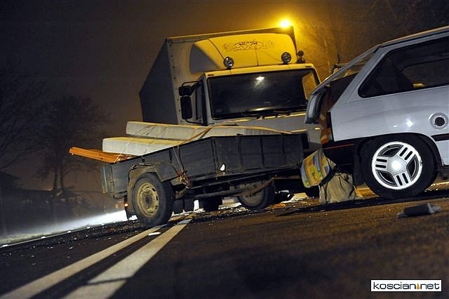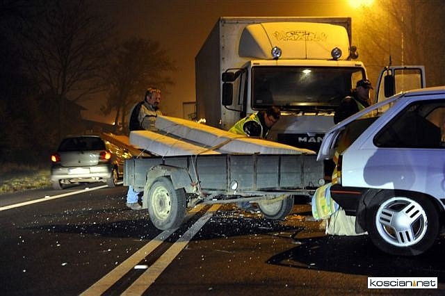 62-letnia kobieta prowadząca opla corsę z lekką przyczepką postanowiła zawrócić na drodze krajowej nr 5 nie bacząc na podwójną linię ciągłą. Wykonując manewr w niedozwolonym miejscu wjechała wprost pod koła samochodu ciężarowego.
