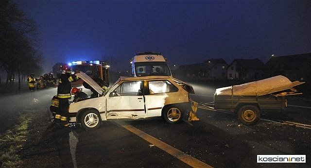 W wypadku ucierpiały pasażerki opla w wieku 55 i 9 lat. Zdarzenie miało miejsce 9 listopada ok. godz. 16.30 na obwodnicy Kościana.