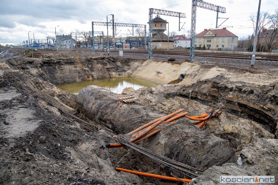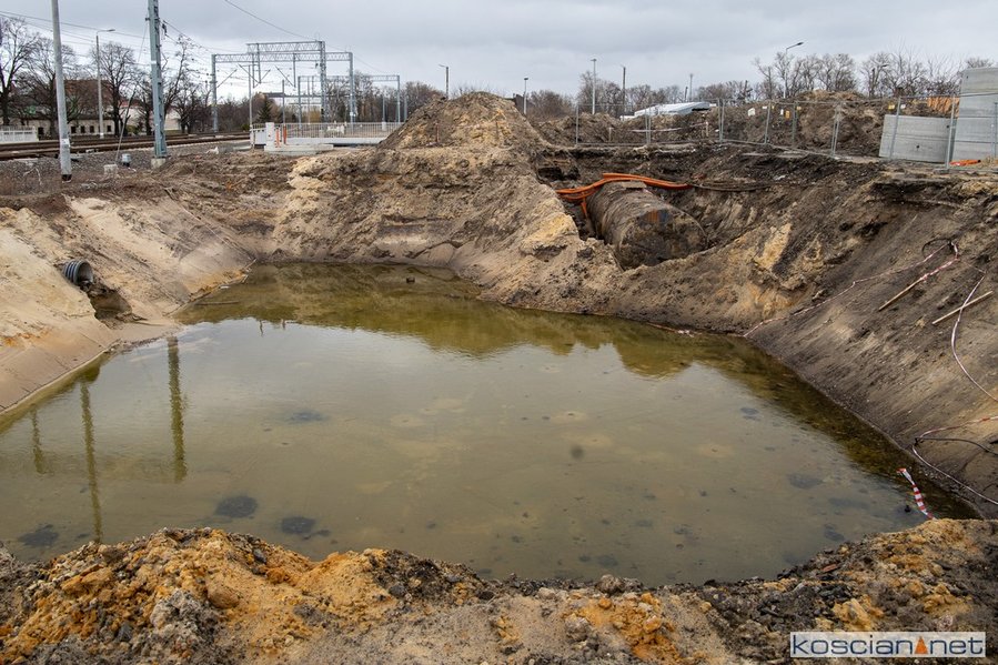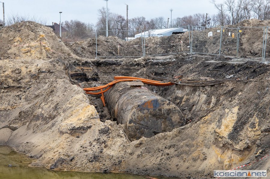 Między innymi z powodu kolizji z sieciami energetycznymi i gazowymi opóźniła się budowa tuneli w ulicach Młyńskiej i Gostyńskiej w Kościanie. Na sporych rozmiarów niespodziankę natrafiono podczas budowy zbiornika retencyjnego, do którego trafiać będą wody opadowe z terenu kościańskiej stacji kolejowej. W granicach powstającego zbiornika odkopano duży metalowy zbiornik. Niespodziewane znalezisko trzeba będzie usunąć…