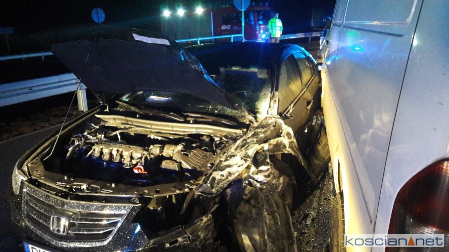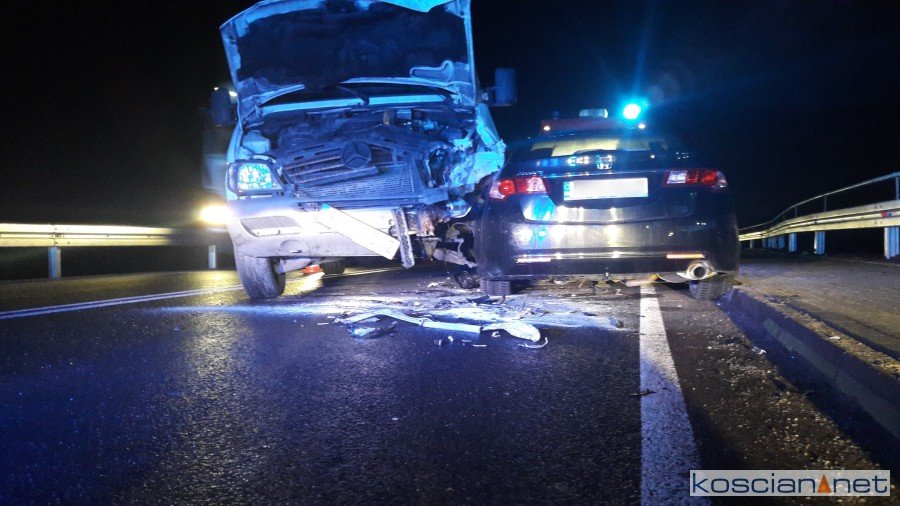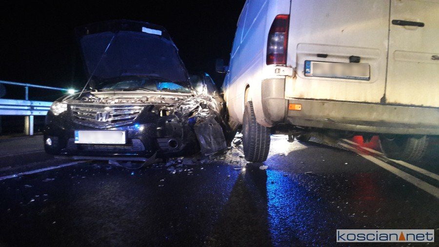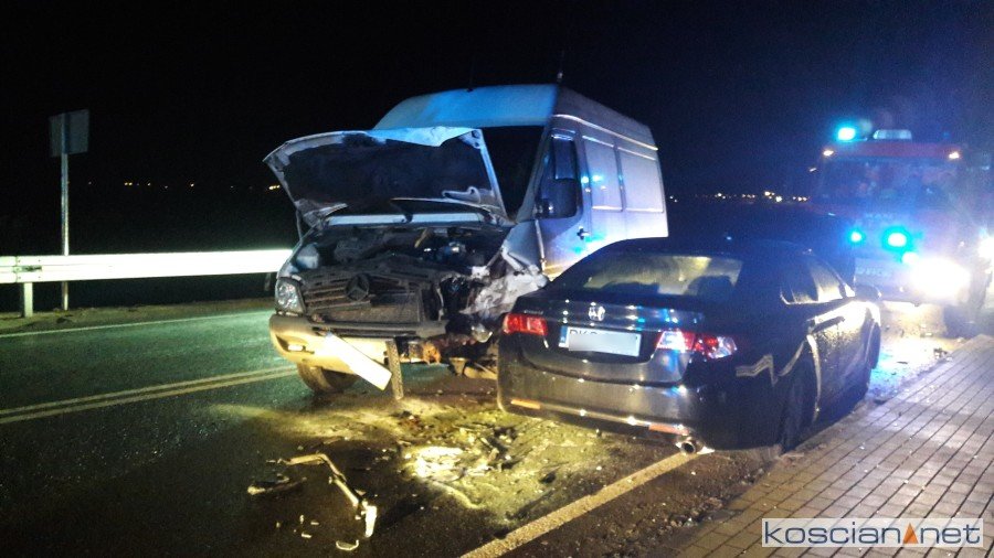 Do zdarzenia doszło we wtorek, 4 grudnia, około godziny 18.30. Mercedes sprinter zjechał na przeciwny pas ruchu i zderzył się hondą accord. Poszkodowaną pasażerkę hondy przewieziono do szpitala. Bus miał leszczyńskie tablice rejestracyjne, a osobówka kościańskie. Okoliczności zdarzenia wyjaśnia poznańska policja, bowiem auta zderzyły się w granicach powiatu poznańskiego.