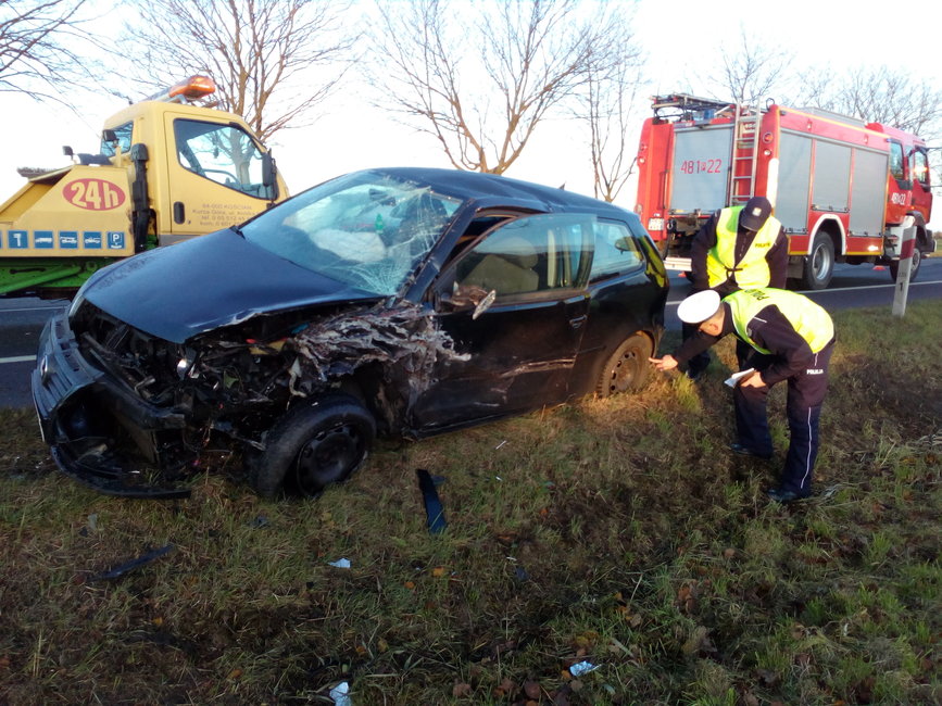 Jadące od strony Poznania mitsubishi – prowadzone przez 56-latkę z Wrocławia - zjechało nagle na przeciwległy pas ruchu i zderzyło się czołowo z volkswagenem polo, którym podróżowało dwóch mieszkańców powiatu grodziskiego. Uczestnicy zdarzenia zostali przewiezieni do kościańskiego szpitala. Kobieta doznała ogólnych potłuczeń ciała. Mężczyźni ze zderzenia wyszli bez szwanku.