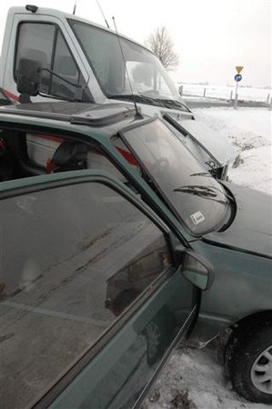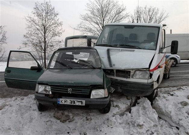 Dziś o godz. 9.25, na obwodnicy Kościana, na wysokości nowo wybudowanej stacji paliw, zderzyły się peugeot 205 i mercedes sprinter. Oba jechały w stronę Poznania. Na szczęście obyło się bez ofiar. Najbardziej ucierpiał kierowca peugeota, 44-letni mieszkaniec okolic Krakowa.