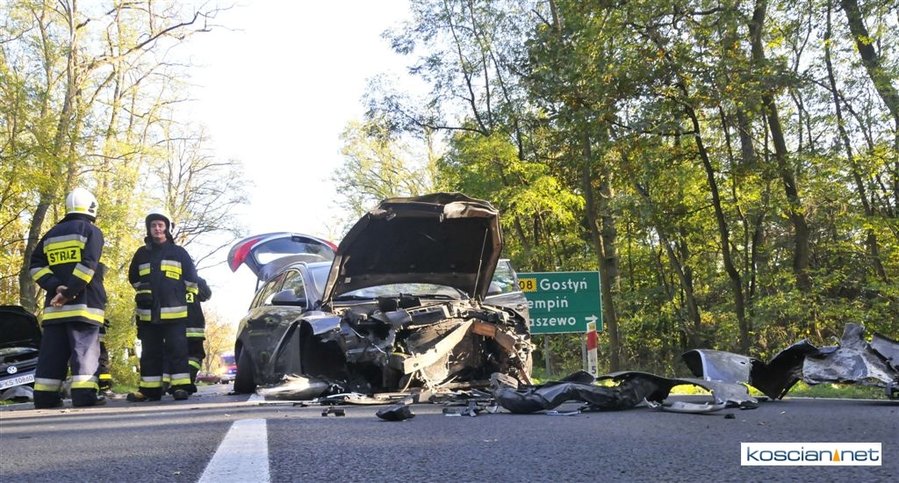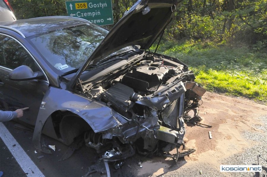 Do zdarzenia doszło w sobotę,21 października, około godziny 15. w pobliżu skrzyżowania drogi nr 308 z drogą Czempiń – Kopaszewo. Kolizję spowodowała 19-latka z Kościana jadąca volkswagenem golfem. Nieprawidłowo wykonała manewr wyprzedzania. Uderzyła w opla insygnię, którym kierował 31-latek z Kościana. Uczestnicy kolizji byli trzeźwi. 19-latka została ukarana mandatem.