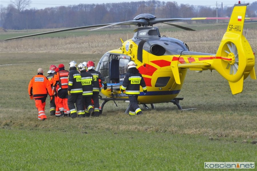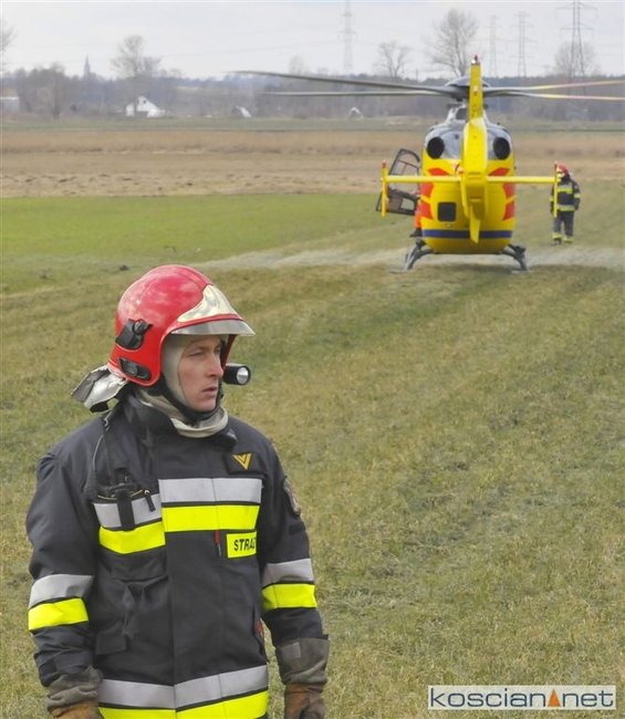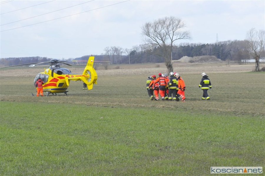 Rannego traktorzystę przetransportowano do szpitala śmigłowcem Lotniczego Pogotowia Ratunkowego.