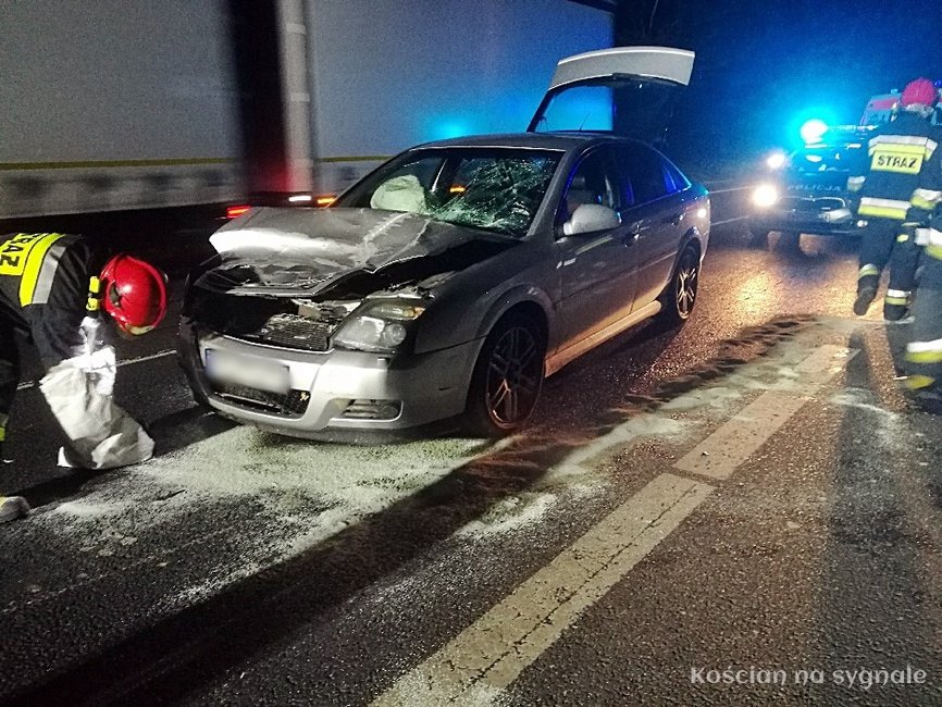 Do zdarzenia doszło 16 listopada, po godzinie 22. na drodze krajowej nr 5 w pobliżu Kawczyna. Jak wynika ze wstępnych ustaleń na drogę wbiegła sarna, która zderzyła się oplem vectra prowadzonym przez 66-letniego poznaniaka, Zwierze zginęło na miejscu. Na miejsce wysłano zastępy straży z PSP i OSP Kościan oraz policję i pogotowi ratunkowe. Do czasu usunięcia uszkodzonego pojazdu ruch na „piątce” odbywał się wahadłowo.