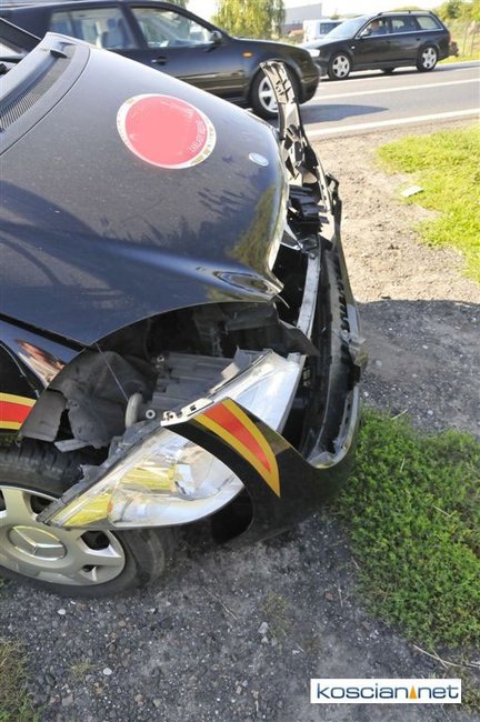 Do zdarzenia doszło przed godziną 15.00 w Kawczynie. Kobieta kierująca osobowym mercedesem prawdopodobnie źle odczytała manewr kierowcy samochodu ciężarowego, który zatrzymał się aby zrobić miejsce jadącej na sygnale karetce pogotowia. Kobieta wjechała wówczas na „piątkę” wprost pod jadący do Poznania ambulans. Świadkowie przypuszczają, że kobieta nie usłyszała sygnałów dźwiękowych karetki ponieważ miała w uszach słuchawki. Transportowaną do Poznania chorą przewieziono do szpitala drugim ambulansem, który wezwano do Kawczyna.