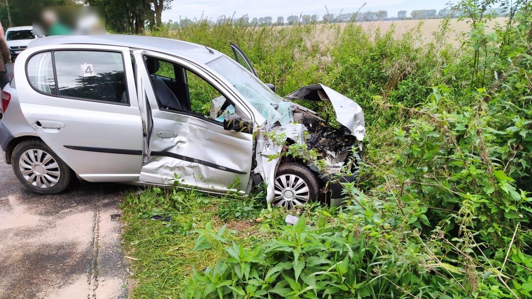 Z naprzeciwka jechała toyota yaris. Kierująca nią, 21-latka, gwałtownie zahamowała gdy zobaczyła peugota jadącego jej pasem podczas wyprzedzania ciągnika. Kobieta straciła panowanie nad samochodem i uderzyła w pierwszy z ciągników.