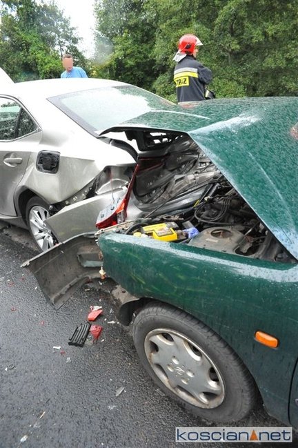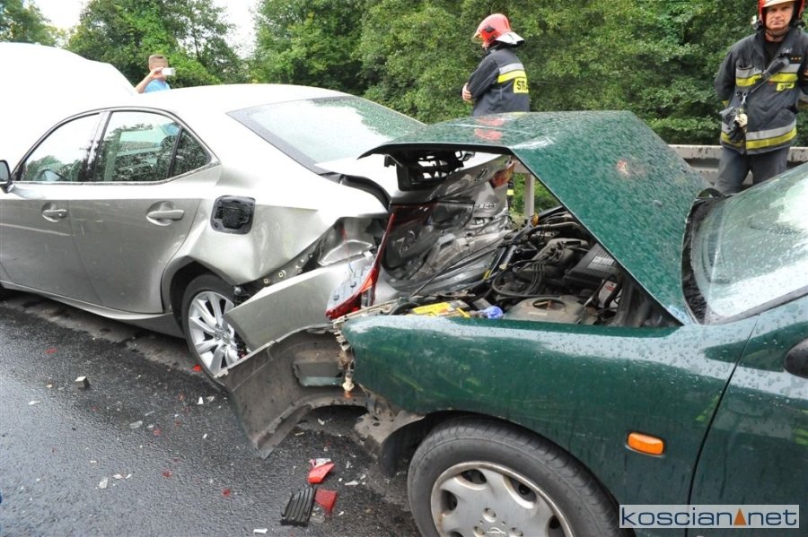 Do zdarzenia doszło w czwartek, 30 sierpnia, około godziny 15.30 w Wydorowie. Uczestniczyły w nim trzy samochody jadące drogą krajową numer 5 w kierunku Kościana. Według wstępnych ustaleń kierowca nissana nie zachował bezpiecznej odległości od poprzedzającego go lexusa i uderzył w jego tył. Po zderzeniu lexus przemieścił się uderzając w tył peugeota. Dwie poszkodowane osoby przewieziono do szpitala na badania.