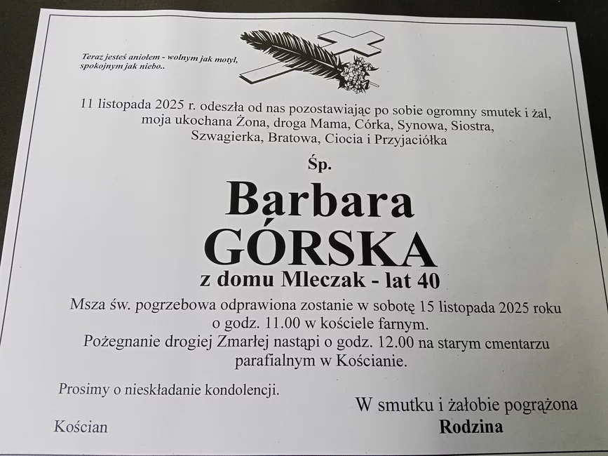 11 listopada zmarła Basia Górska, kościanianka której życie i działalność poruszyły wiele osób w całym regionie. Jej postawa, determinacja w trudnej chorobie oraz optymizm były przykładem dla wszystkich, którzy mieli okazję ją poznać.