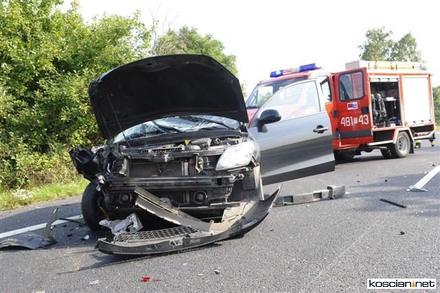 - Kierujący lanosem, 43-letni mieszkaniec Kościana, chcąc uniknąć czołowego zderzenia zjechał do rowu i uderzył w drzewo. W wyniku tego zdarzenia trzy osoby trafiły do szpitala. Najbardziej ucierpiała pasażerka lanosa, 64-letnia mieszkanka gm. Kościan, która z ciężkimi obrażeniami przebywa w szpitalu. Pozostałe osoby odniosły lekkie obrażenia – informuje Radosław Nowak z KPP Kościan.