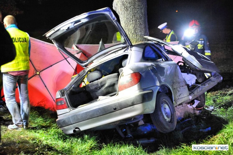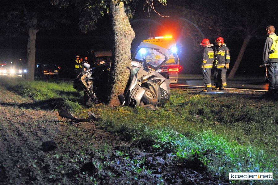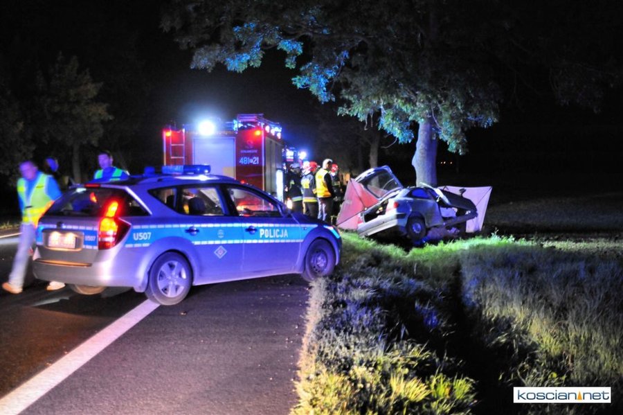 Do zdarzenia doszło we wtorek, 12 września, około godziny 22.00 na drodze krajowej nr 5 pomiędzy Poninem a Czaczem. Kierujący citroenem 19-letni mieszkaniec Kościana z niewyjaśnionej przyczyny zjechał z drogi i uderzył w przydrożne drzewo. Strażacy musieli użyć sprzętu hydraulicznego aby wydobyć zakleszczonego w aucie kierowcę. Przybyły na miejsce lekarz stwierdził zgon mężczyzny.
