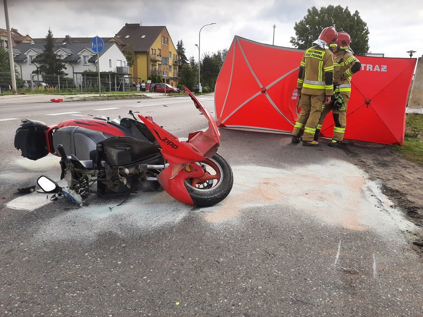 Pomimo długiej resuscytacji kierowca skutera zmarł. Okoliczności i przebieg wypadku ma ustalić policyjne dochodzenie. Na jego poczet zabezpieczono nagranie z monitoringu znajdującej się w pobliżu firmy.