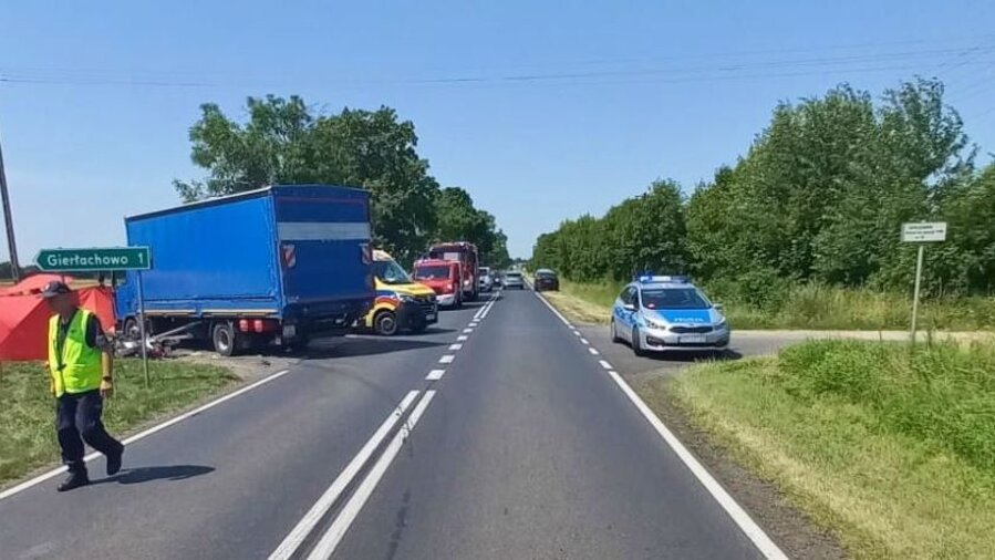 Pomiędzy Jerką a Lubiniem doszło do tragicznego w skutkach zderzenia motocykla z samochodem ciężarowym.