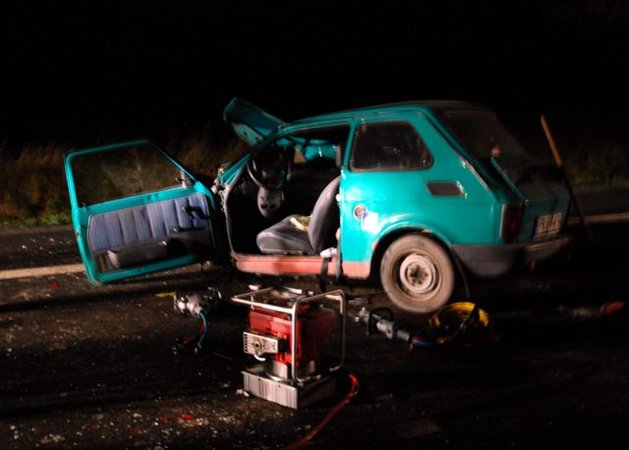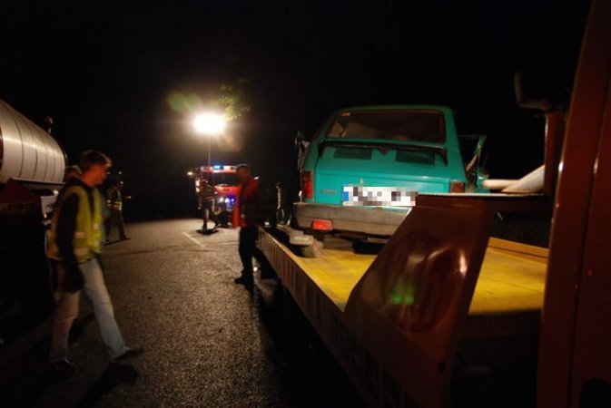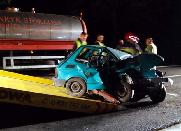 Wczoraj wieczorem mały fiat uderzył w tył zaparkowanej cysterny. W wyniku zderzenia maluch został zmiażdżony, a kierujący nim 52-letni mieszkaniec gminy Kościan zginął na miejscu.
