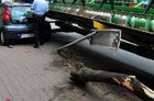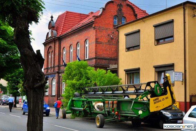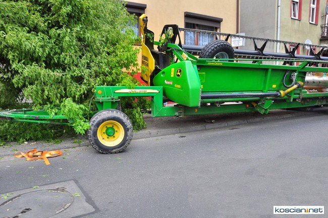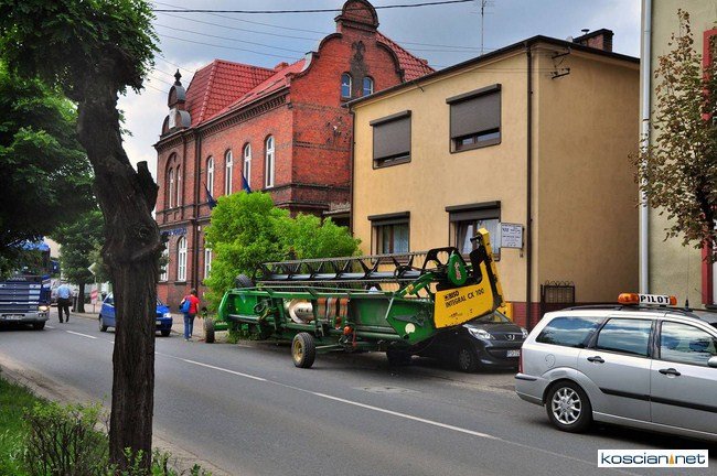 Czempiń, poniedziałek, 1 sierpnia br. Przejeżdżający ulicą 24 stycznia kombajn zgubił przed budynkiem poczty heder, który zjechał na chodnik uderzył w drzewo i uszkodził zaparkowany samochód osobowy.