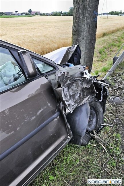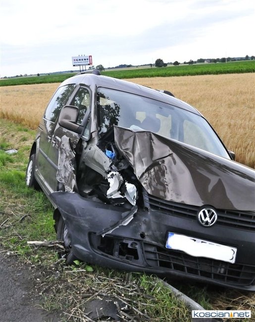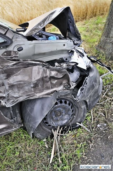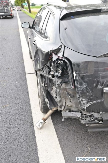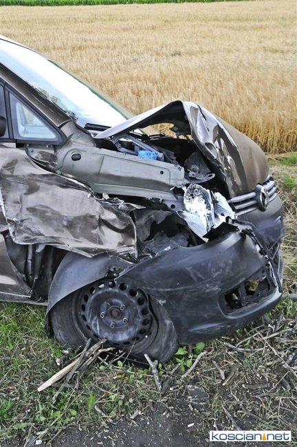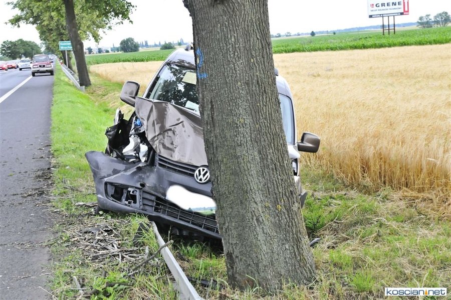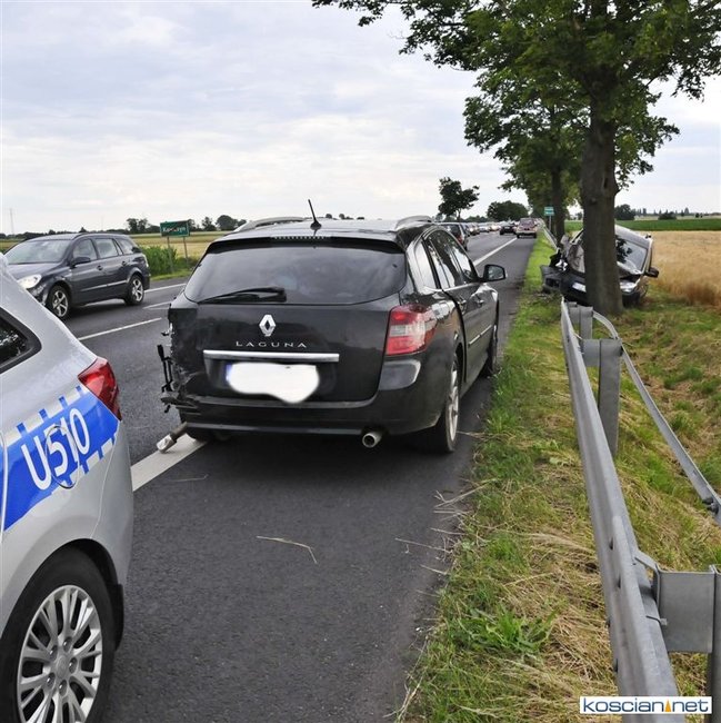 W okolicy Kawczyna. 75-letni mieszkaniec powiatu szamotulskiego kierujący volkswagenem caddy nie zachował bezpiecznej odległości od poprzedzającego go pojazdu. Uderzył w tył renault laguny, którą kierowała mieszkanka powiatu poznańskiego. W wyniku uderzenia volkswagen przemieścił się na przeciwny pas ruchu, a następnie zjechał na pobocze i zatrzymał się na drzewie.