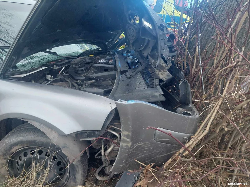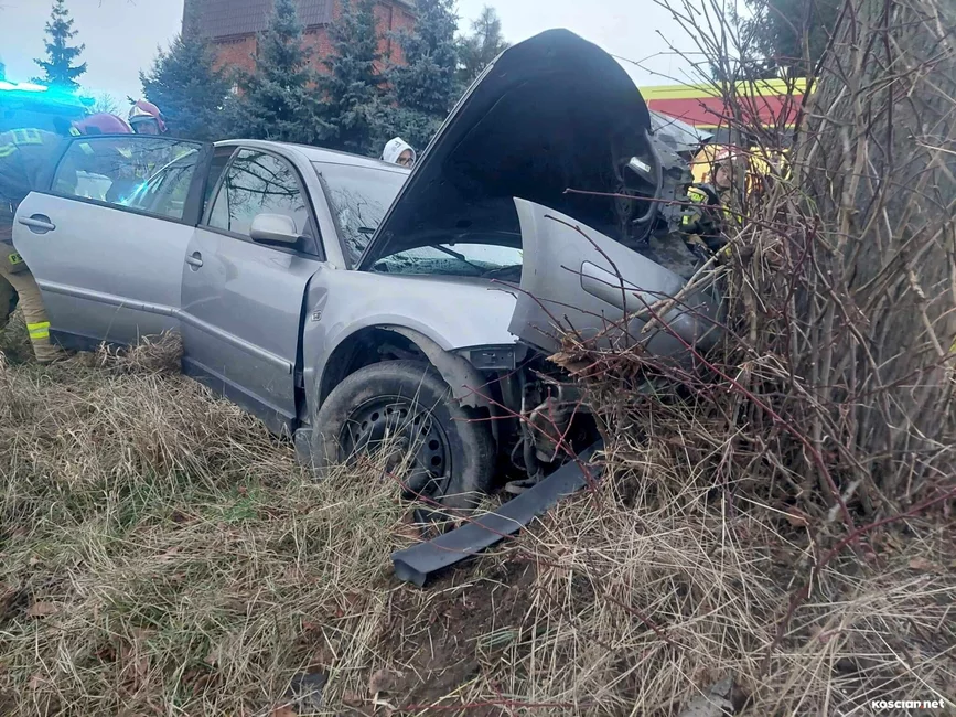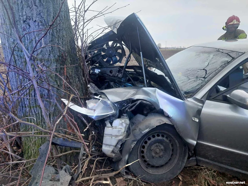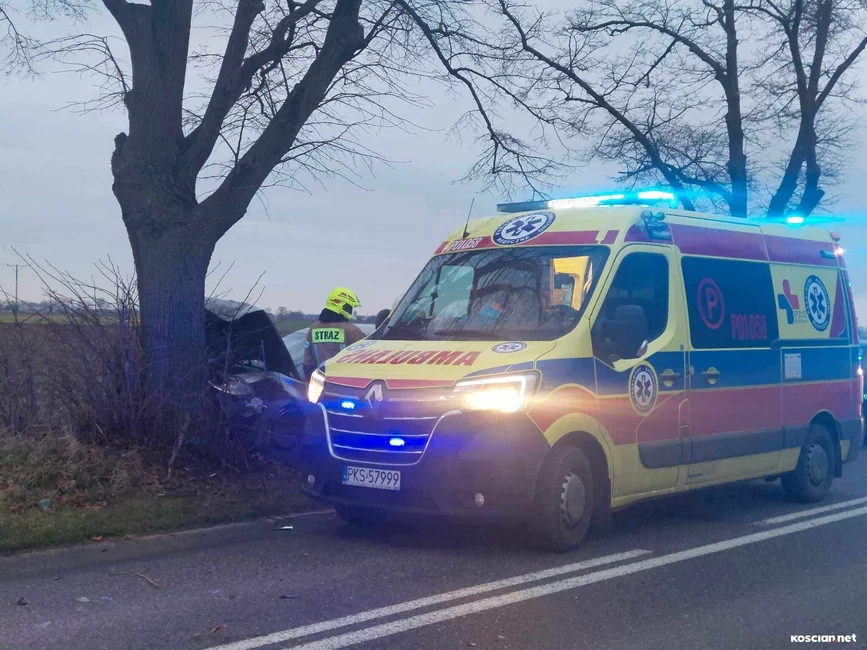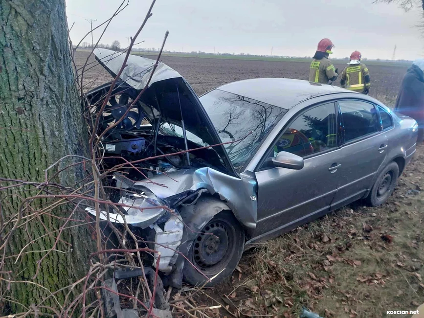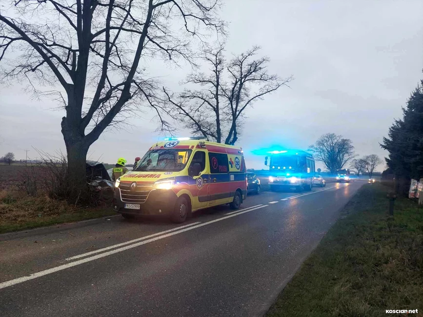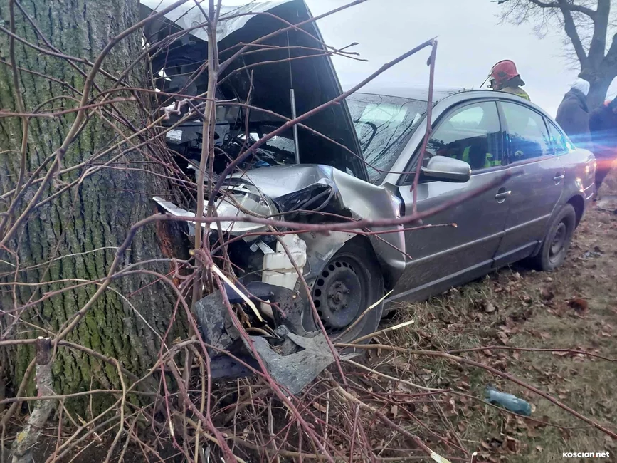 Do zdarzenia doszło w niedzielę, 17 grudnia, około godziny 15. we wsi Jasień. Jak wynika ze wstępnych ustaleń policji, 23-latni mieszkaniec gminy Kościan nie dostosował prędkości do warunków panujących na drodze i stracił panowanie nad samochodem, po czym wjechał w przydrożne drzewo. 23-letnią pasażerkę przewieziono do szpitala na badania. Ponieważ nie odniosła poważnych obrażeń zdarzenie zakwalifikowano jako kolizję. Kierowcę ukarano mandatem.