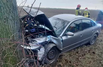 Kierowca volkswagena stracił panowanie nad samochodem i wjechał w przydrożne drzewo.