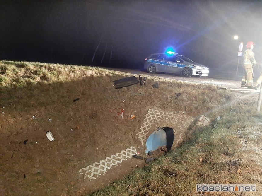 Do zdarzenia doszło w środę, 22 grudnia, około godziny 19.25, na starej „piątce” pomiędzy Poninem a Czaczem. Jak wynika z pierwszych ustaleń, kierująca volkswagenem golfem 53-latka zjechała z dużą prędkością do przydrożnego rowu. Auto odbiło się od skarpy i zatrzymało na środku drogi. Kierującą przewieziono na badania do kościańskiego szpitala. Okoliczności i przebieg zdarzenia ma ustalić policyjne dochodzenie.