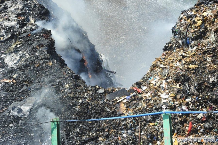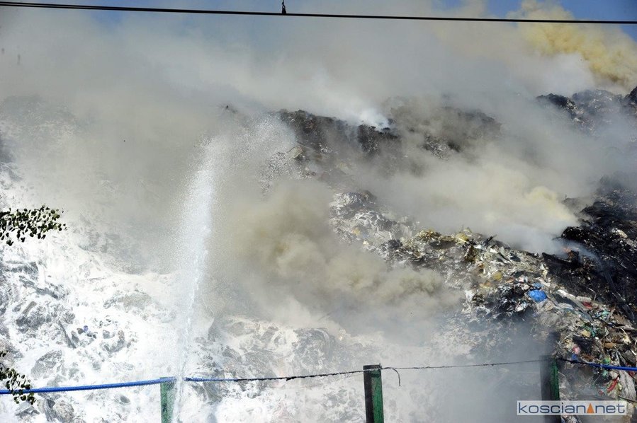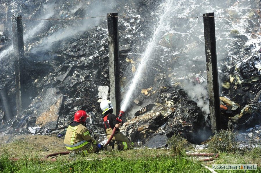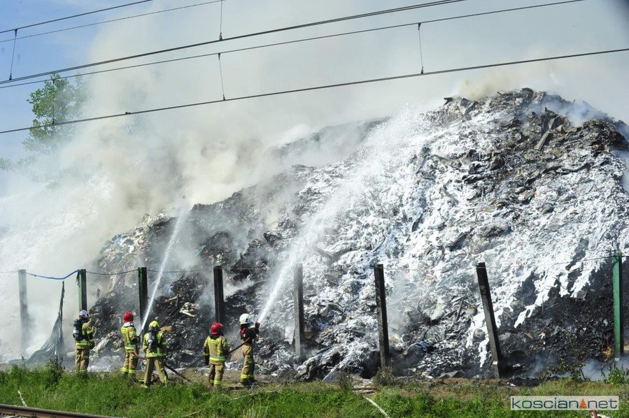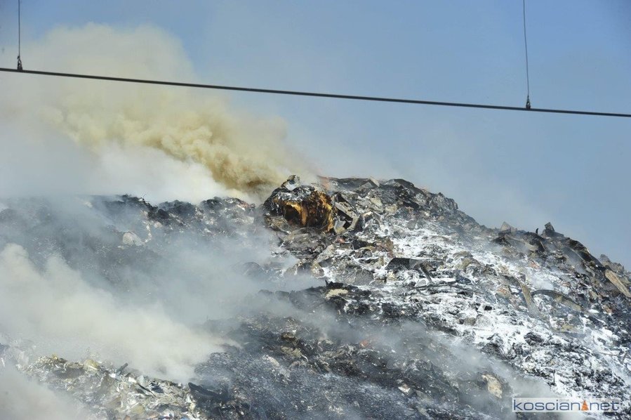 Pożar wybuchł po godzinie 9. w czwartek, 3 czerwca. Paliły się dwie hałdy rozdrobnionych odpadów o powierzchni 300 m kw. i wysokości do 8 metrów. Z ogniem walczyło blisko trzydzieści zastępów straży pożarnej. W piątek wieczorem pożar wydawał się opanowany. W sobotę rano, gdy działania strażaków zmierzały ku końcowi, ponownie zapaliła się jedna z hałd. Do pożaru zadysponowano piętnaście zastępów. Trudno ocenić kiedy zakończy się akcja gaśnicza.