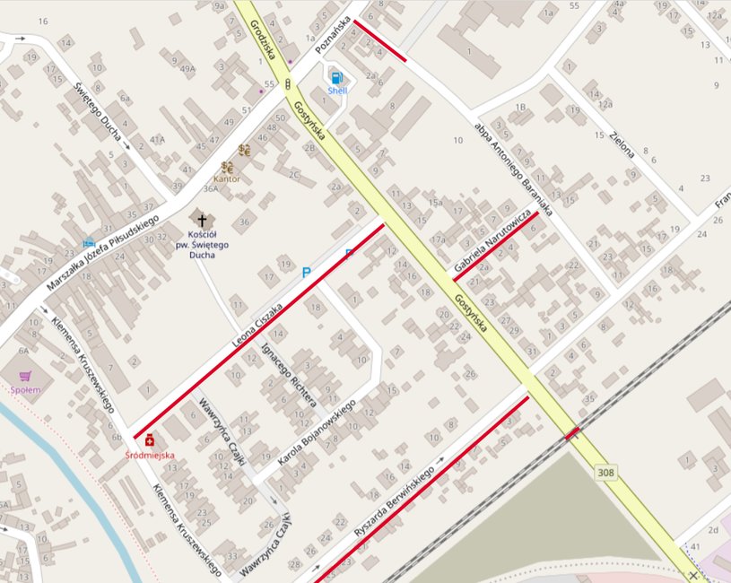 - przy wjeździe z ul. Gostyńskiej na ul. Ciszaka pojawi się znak „droga bez przejazdu”